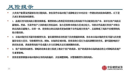 2. 市场环境变化可能导致模型失效:量化模型的有效性基于历史数据的回测,但未来市场环境的变化可能与历史数据存在较大差异,导致模型失效。例如,市场的宏观环境、投资者的交易行为或局部博弈的变化,都可能影响因子的实际表现,进而使得风险平价或最大多元化策略无法实现预期的效果。