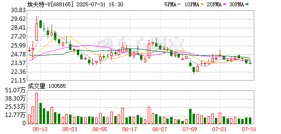 证券时报·数据宝统计显示,埃夫特今日收盘价为23.45元,下跌0.30%,日换手率为1.93%,成交额为2.38亿元,全天主力资金净流出1519.46万元,近5日该股累计下跌2.29%,近5日资金合计净流出8932.72万元。